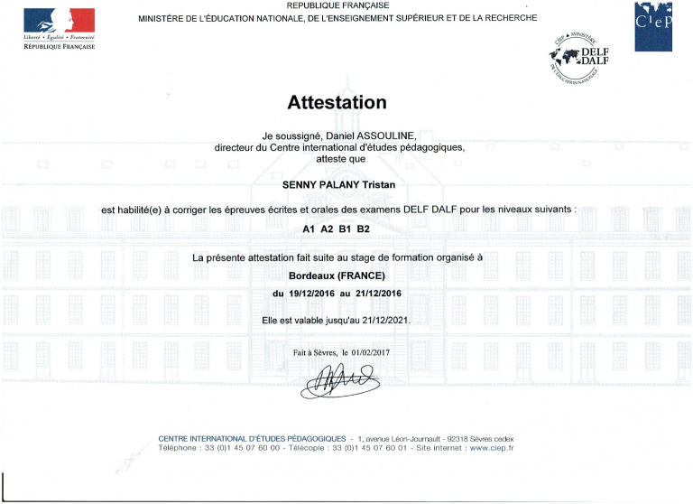 attestation DELF DALF Tristan